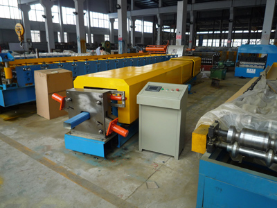 The down pipe roll forming machine is made up of decoiler, roll forming system, cutting equipment, protective guard, hydraulic system, control system, and product supporter. It can bend the roll formed pipe. This equipment can let the drainpipe and the bending connect to the whole.